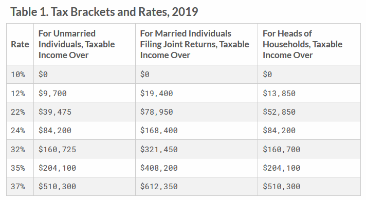 Another example of effective tax rate for income of $100000 a year or $87800 after the standard deduction would be ($9699)(10%) = $969.9, ($29775)(12%) = $3573, ($44725)(22%) = $9839.5, and ($3600)(24%) = $864. For a total of $15246.2 taxed and effective tax rate of ($15246.2/$100000)(100) = 15.25%. This is almost double the tax burden by percentage then the person making $50000 but still far less then what the Table leads you to believe.